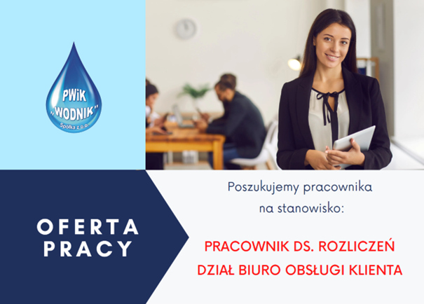 Przedsiębiorstwo Wodociągów i Kanalizacji „WODNIK” Sp. z o.o., Pl. Piastowski 21, 58-560 Jelenia Góra poszukuje pracownika na stanowisko: