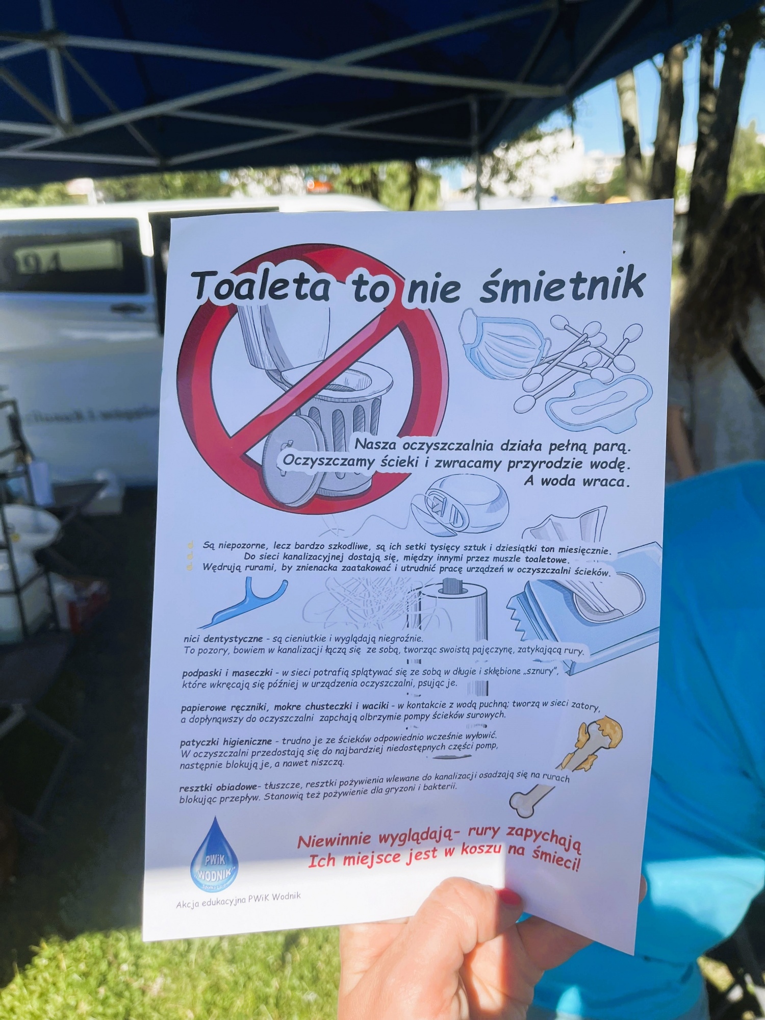 22 czerwca 2024 roku PWiK "WODNIK" Sp. z o.o. wzięło udział w Festynie Rodzinnym, świętując rozpoczęcie wakacji. Festyn, zorganizowany przez JSM, przyciągnął wielu uczestników i oferował mnóstwo atrakcji dla całych rodzin. Nasze stoisko edukacyjne cieszyło się dużym zainteresowaniem. Dział laboratorium przygotował ciekawe eksperymenty, a pracownicy oczyszczalni ścieków prowadzili edukację ekologiczną, zachęcając do dbania o środowisko oraz tłumacząc, dlaczego nie wolno wrzucać śmieci do kanalizacji i jakie mogą być tego konsekwencje.